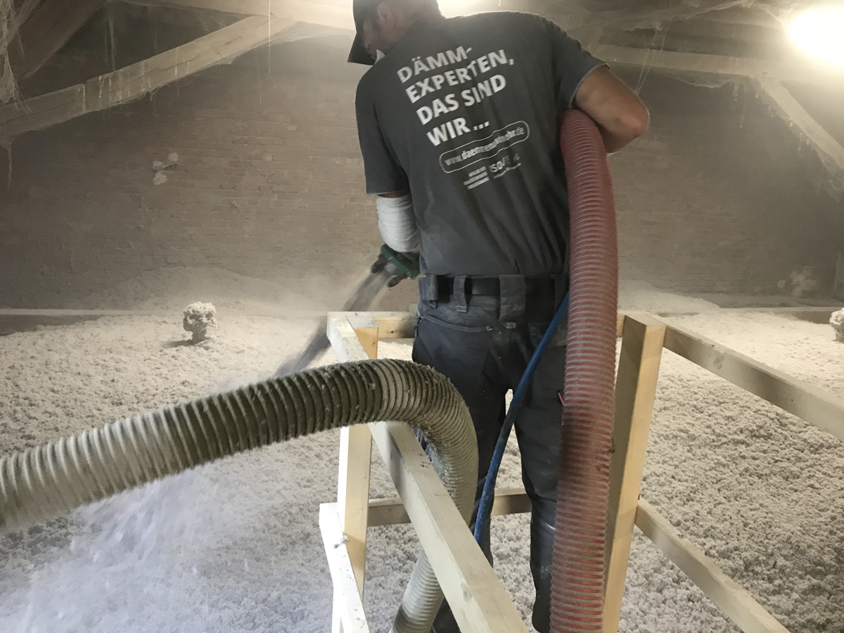 Doch die herkömmliche Mattenware ist für solche Dächer komplett ungeeignet. Die starre Form des Materials lässt keine lückenlose Dämmung zu und das unwegsame oft gar nicht zugängliche Dach erschwert die handwerkliche Leistung oder macht sie gar unmöglich. Die Einblas-Technik wirkt hier umso besser. Die Dämmflocken werden in jede noch so schwer zugängliche Ecke gepustet.