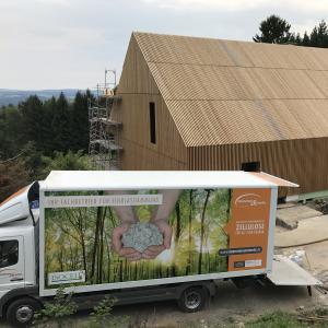 Dämmarbeiten Fassade mit Zellulose (Ökologiezentrum in Luxemburg)